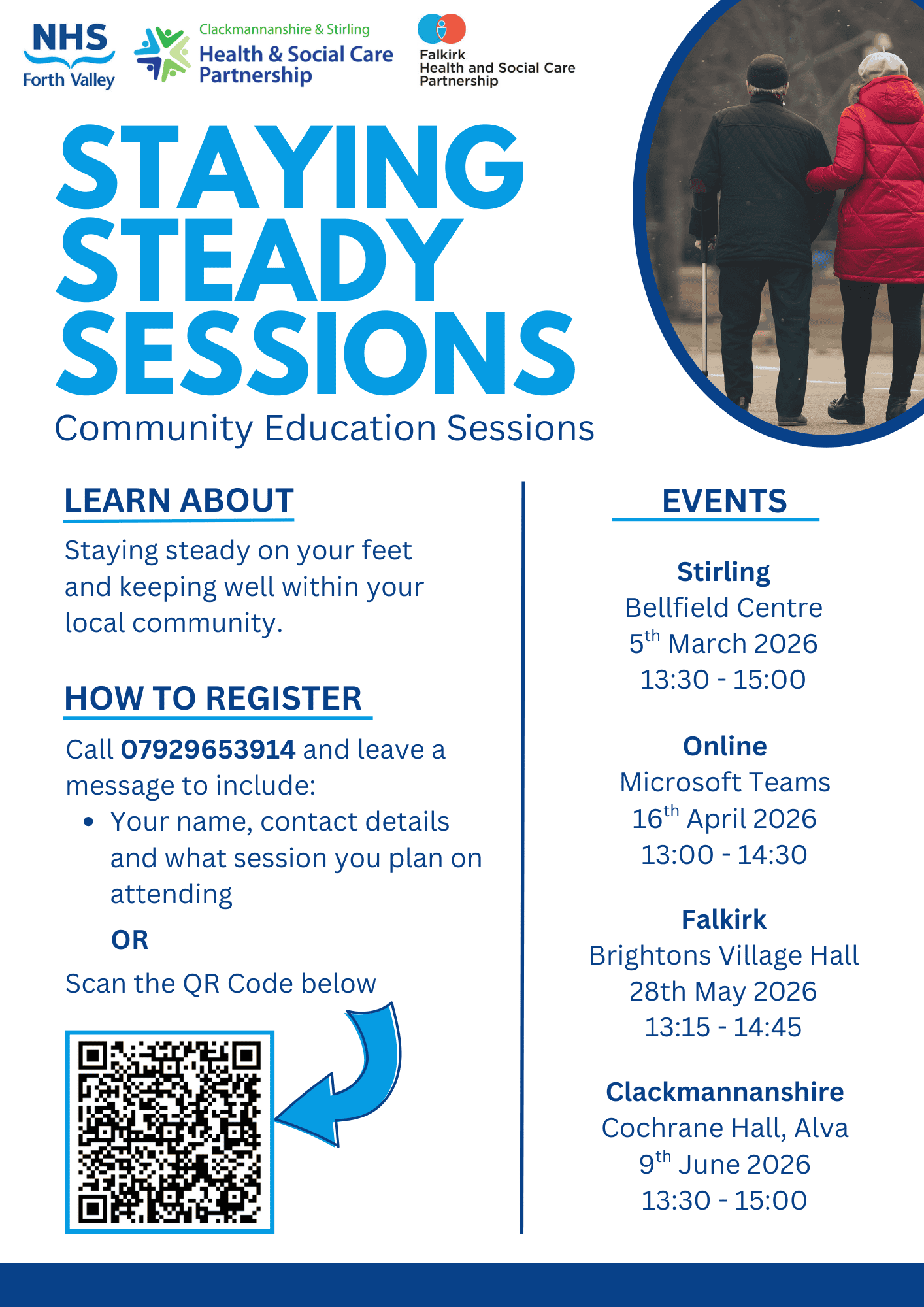 NHS Forth Valley and Falkirk Health and Social Care Partnership (HSCP) are providing “Staying Steady” sessions, designed to ensure people with mobility issues can be safe and stay well in the community.