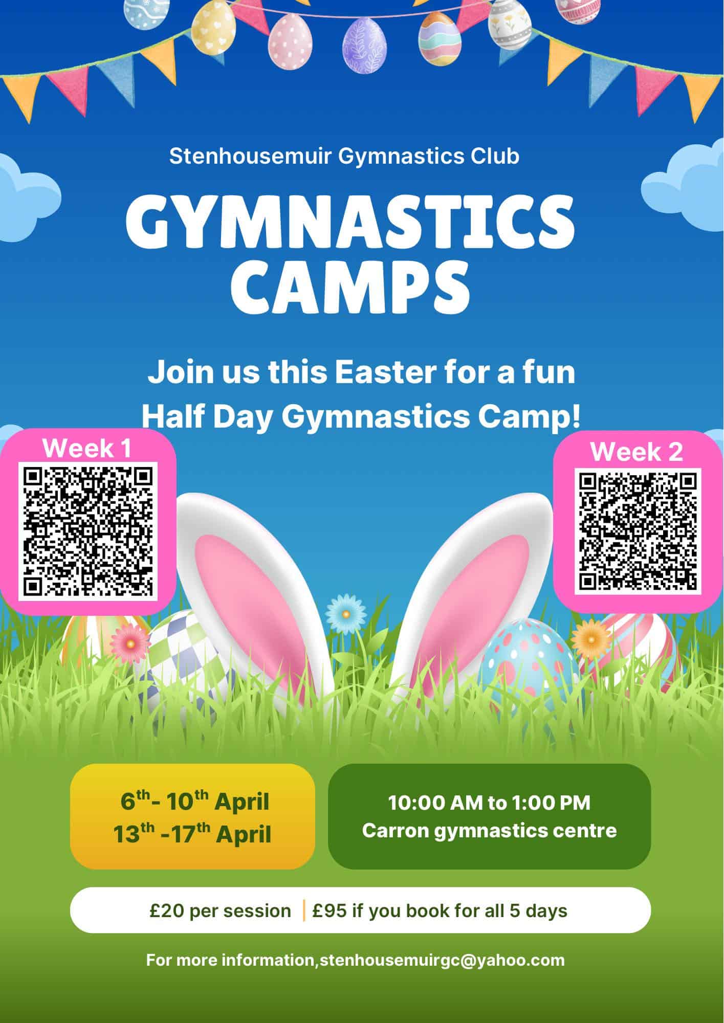 For further information, including how to book a place, please contact Stenhousemuir Gymnastics Club by email: stenhousemuirgc@yahoo.com